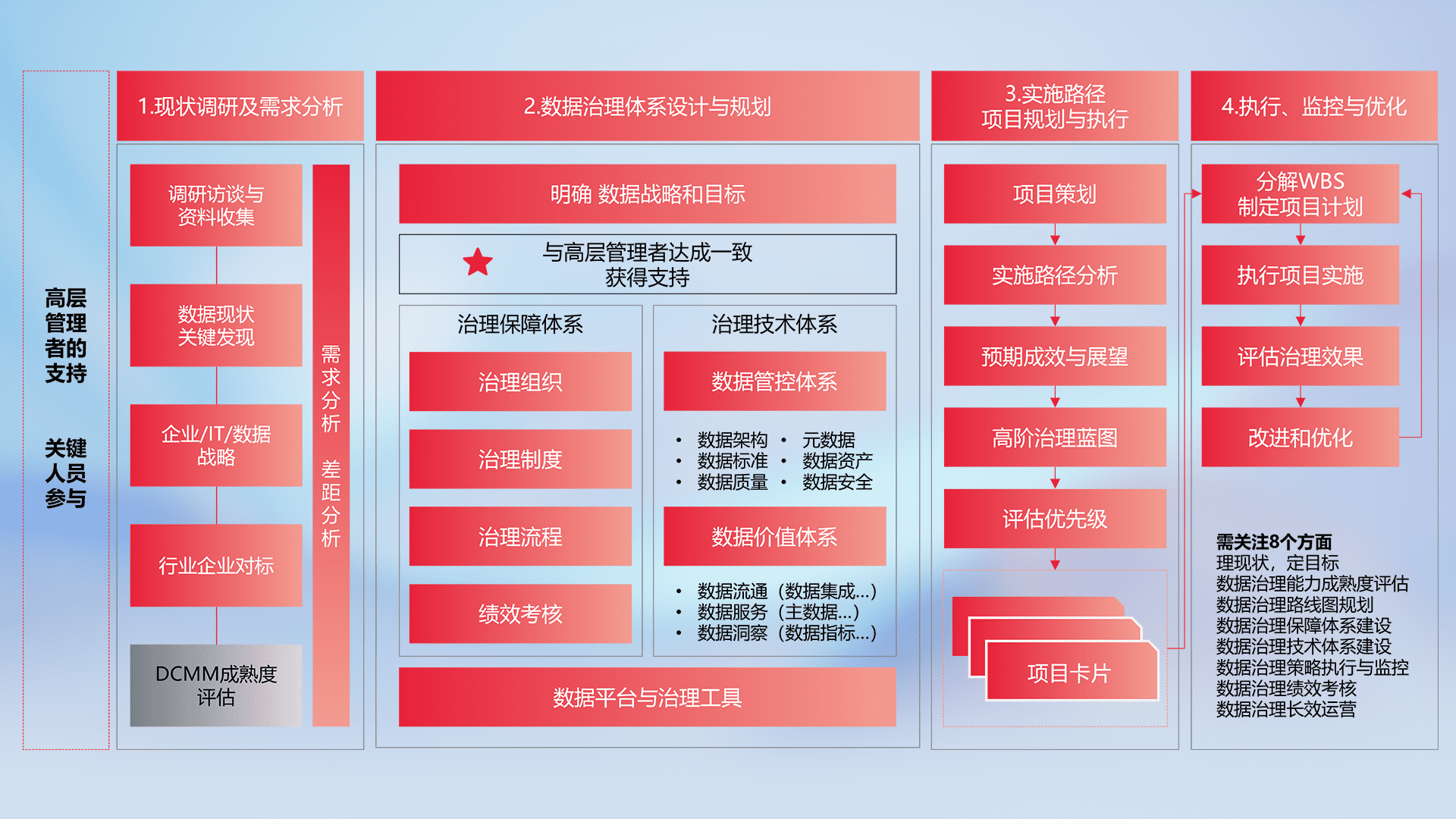 制定并执行统一的数据标准,,,,规范数据定义和格式,,,,消除冗余和不一致性,,,实现跨部门和跨系统的数据一致性,,,,为企业提供标准化的数据基础。。。。
